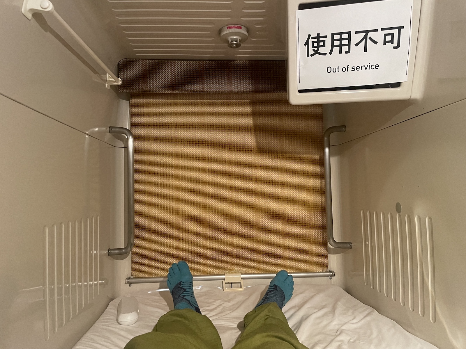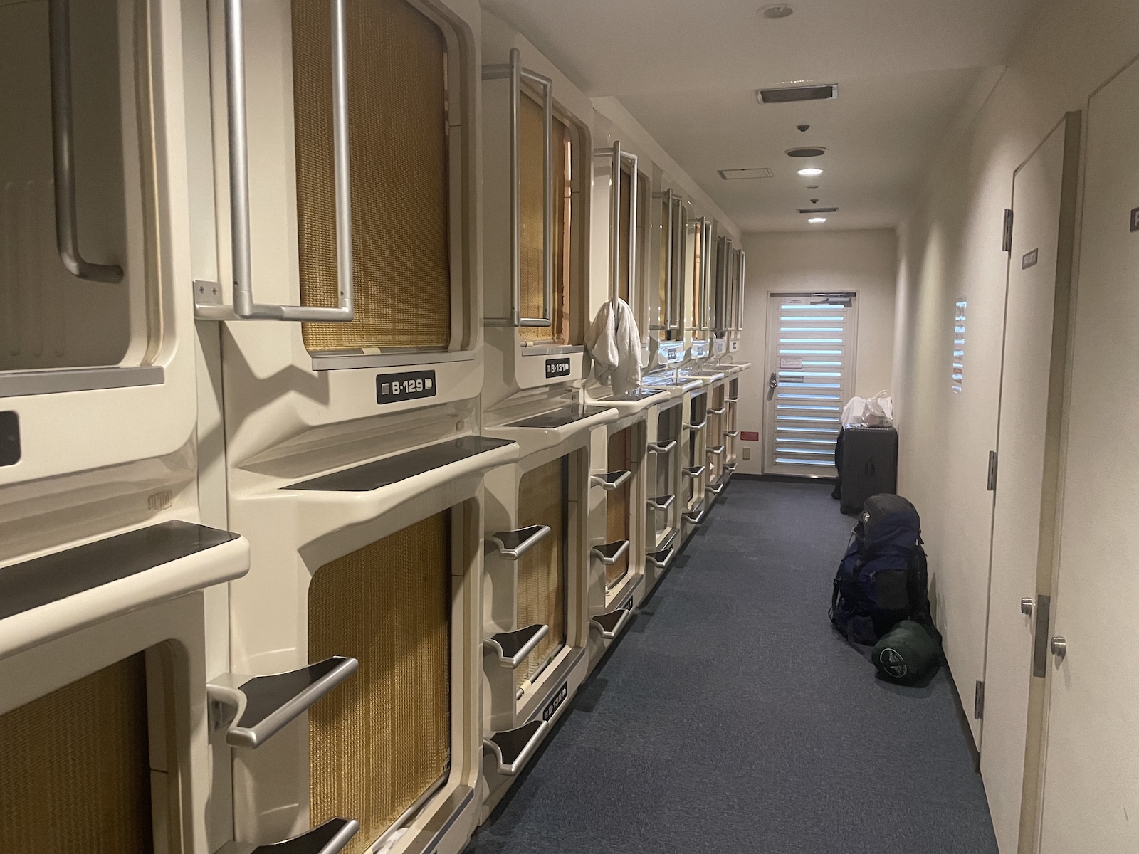 Để tiết kiệm chi phí, mình đặt phòng ở một Capsule Hotel để trải nghiệm thử cảm giác “sống trong hộp” ra sao. Mỗi khách được cấp 1 hộp ngủ diện tích khoảng 2m2 (1m x 2m), chỉ vừa đủ chỗ để ngủ, cùng 1 tủ khóa nằm ở tầng trệt để chứa hành lý.