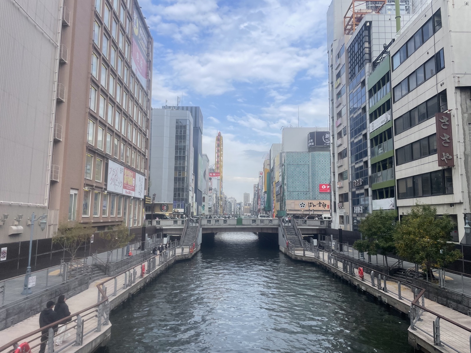 Ngay sau khi nhận phòng khách sạn, mình xỏ giày ngay ra đường để dạo bước ngắm cảnh vòng quanh khu vực trung tâm Osaka. Tự nhiên chợt nhớ đến kỉ niệm hồi 2016 khi lần đầu tiên đi du lịch Nhật Bản: suýt nữa bị lạc khi chạy ở Osaka vì điện thoại hết pin giữa đường.