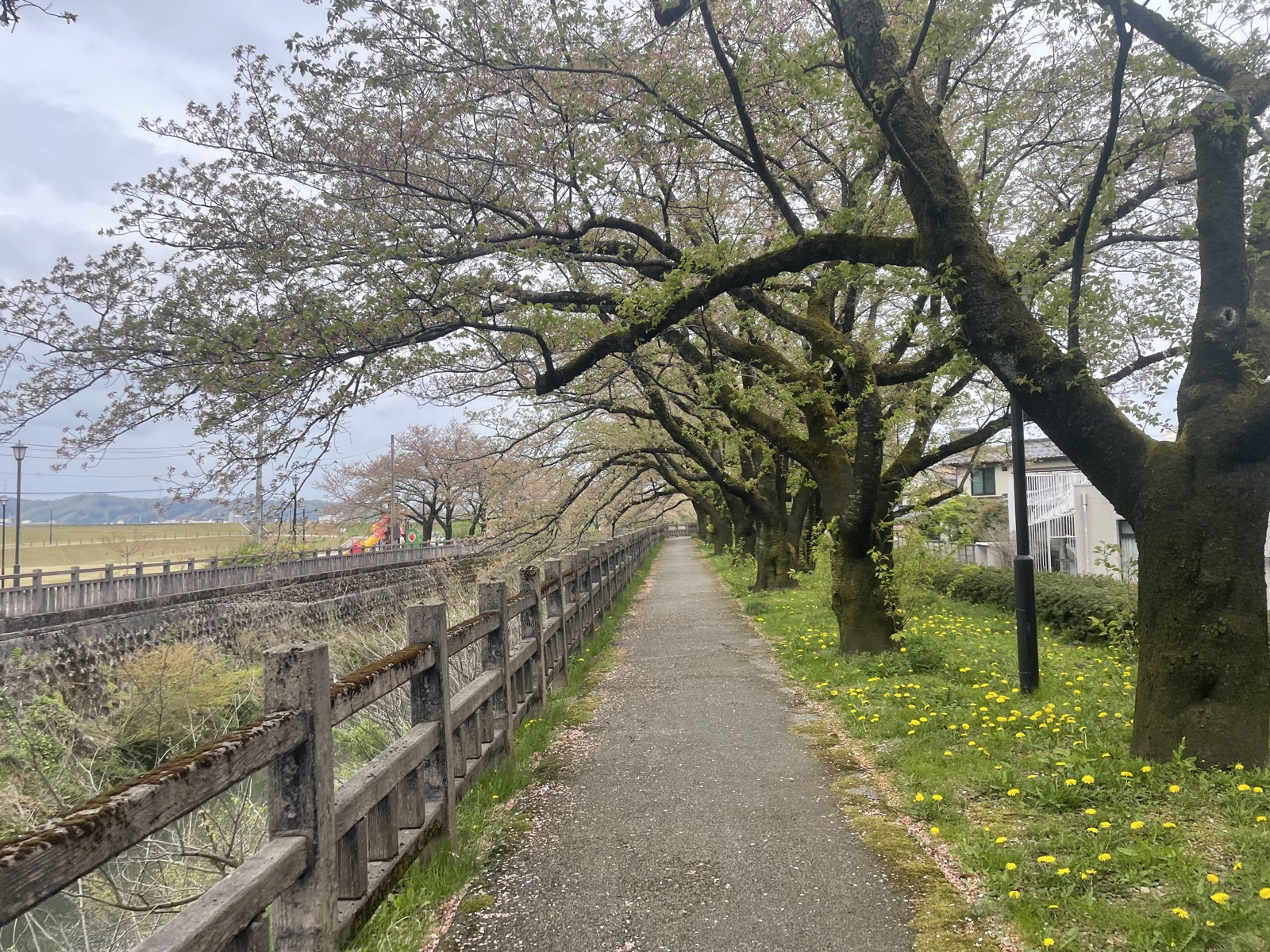 Góc công viên này mới cách đây 2 tuần hoa anh đào còn đang rực rỡ trắng hồng, giờ đã chuyển gần hết sang sắc xanh. Đường chạy dọc theo bờ sông mang đến khung cảnh bình yên, thư giãn lạ thường.