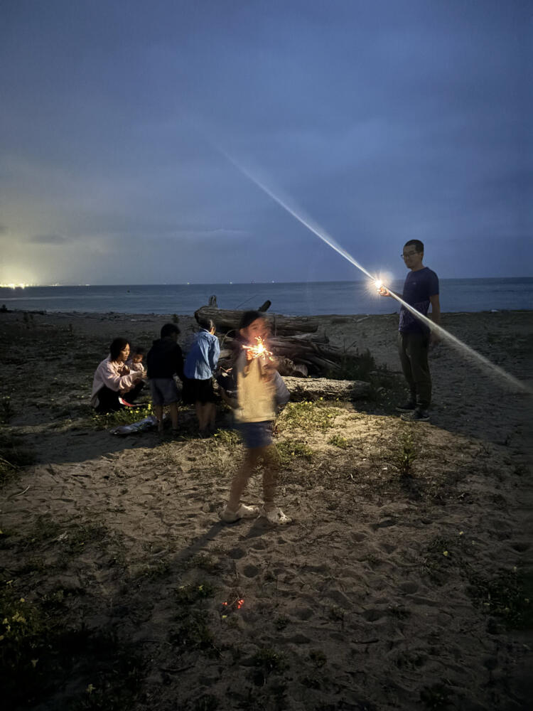 Gia đình mình còn có dịp trải nghiệm bắn pháo hoa ở bờ biển. Từ đầu mùa xuân, pháo hoa được bán rộng rãi trong các siêu thị. Mọi người có thể mua về đem ra biển, bờ sông để đốt pháo, thư giãn cùng nhau.