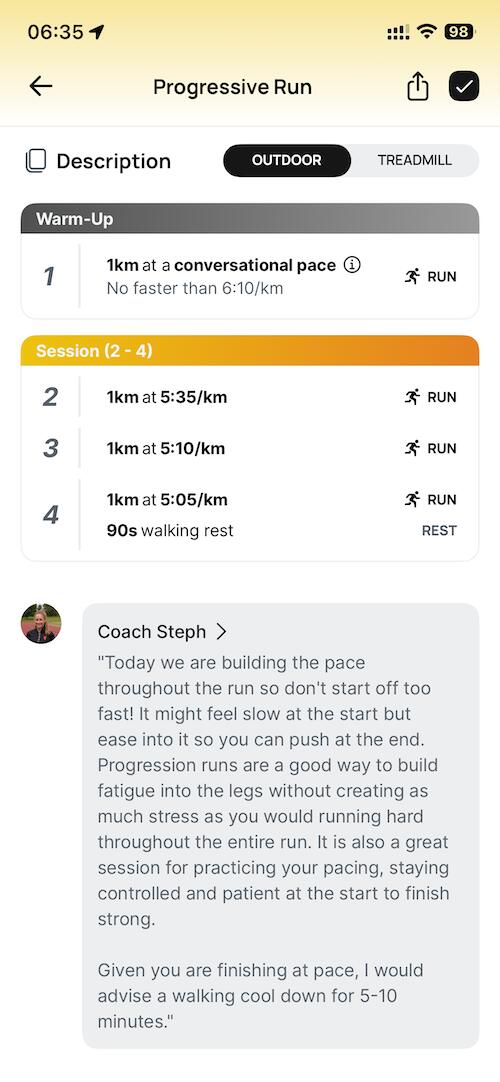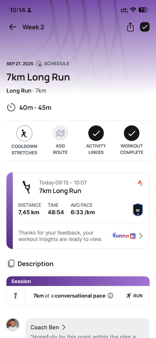 Việc tạo giáo án trên ứng dụng Runna rất trực quan và dễ hiểu. Chi tiết các buổi tập được trình bày chi tiết, dễ dàng ghi nhớ để thực hành ngoài đường.