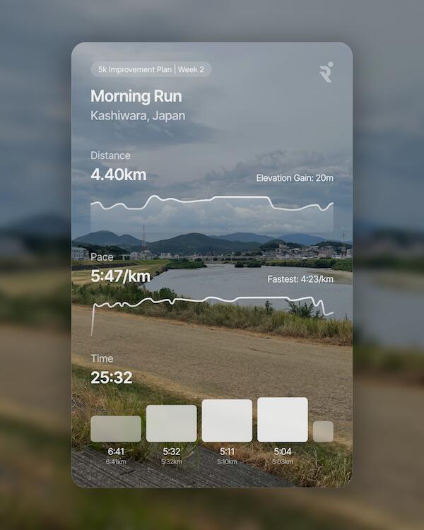 Ngoài ra, tính năng chia sẻ thành tích chạy bộ của Runna cũng khá ấn tượng. Các thông số của buổi chạy được trình bày chi tiết trên nền hình ảnh tùy chọn, nhìn ấn tượng hơn hẳn so với tính năng chia sẻ mặc định của Strava