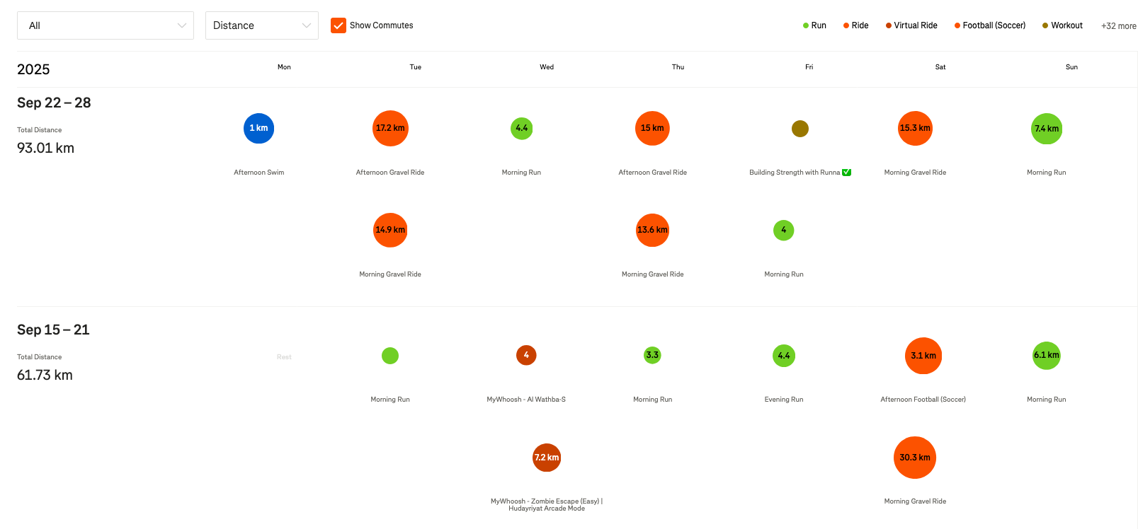 Sau một thời gian dài chỉ toàn tập luyện dưỡng sinh, từ đầu tuần W38 mình đã quay trở lại tập luyện nghiêm túc nhằm “phục hồi nhân phẩm”. Lần này mình tập luyện theo giáo án của ứng dụng Runna – anh em cùng nhà với Strava.