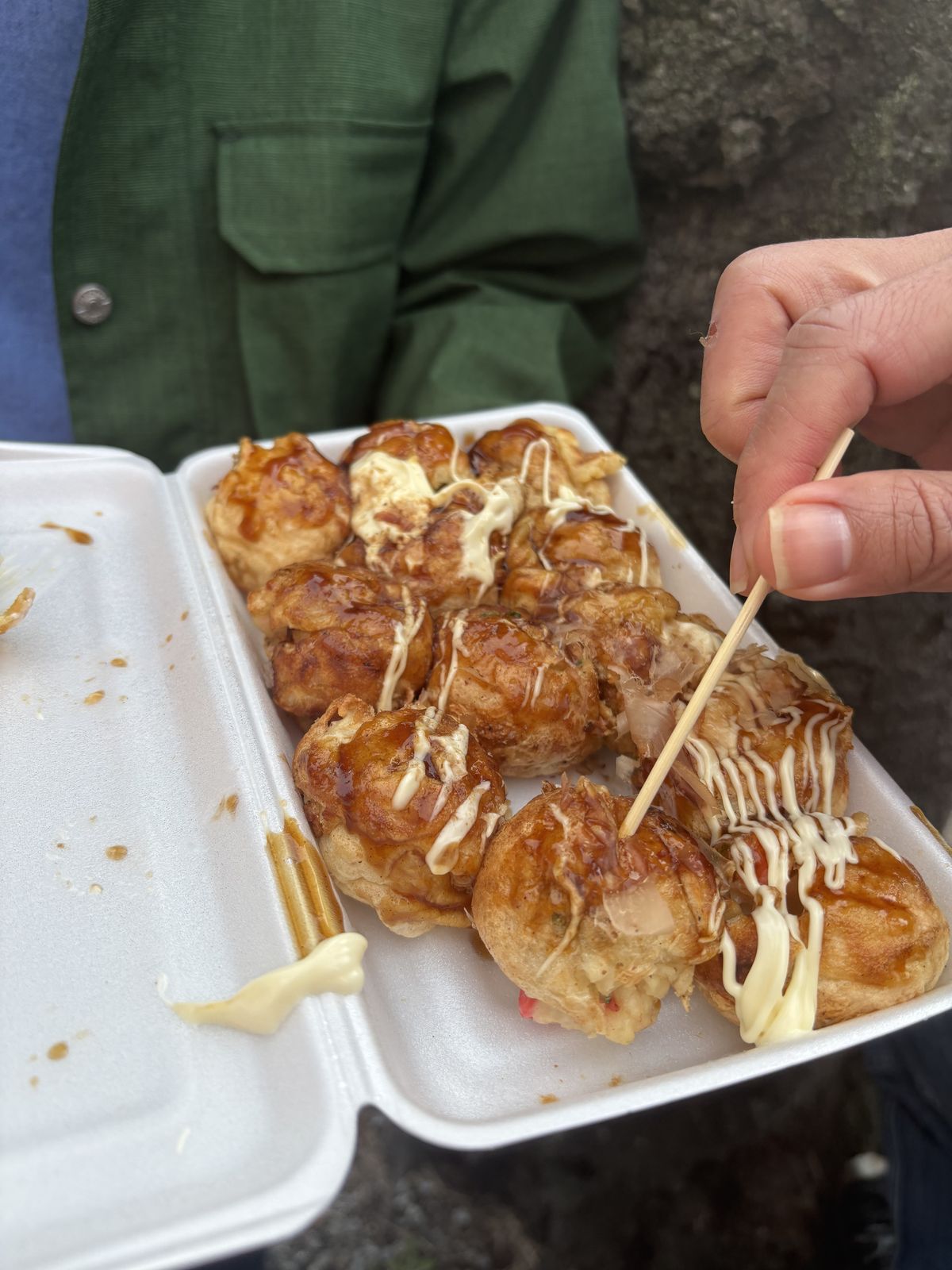 Gia đình mình không xếp hàng vào chùa mà quẹo vào khu vực quầy ăn uống, trò chơi – nơi cũng đông đúc không kém. Hai bạn nhỏ rất hào hứng tham gia các trò chơi, trong khi đó ba mẹ tích cực măm măm các món đặc sản đầu năm.