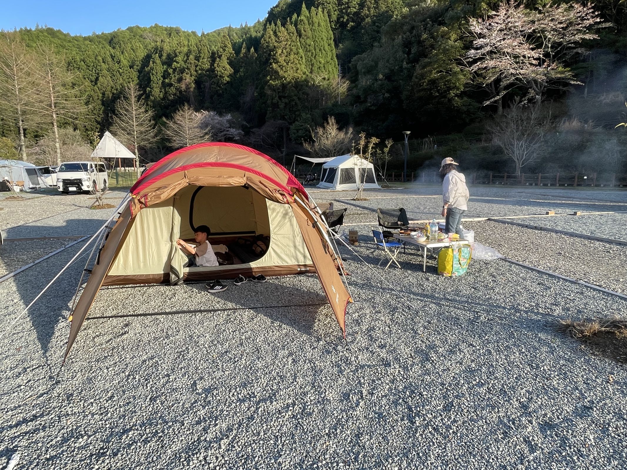 Sau khi đào măng xong, cả nhà mình cùng nhau lên đường đi cắm trại. Đây là lần đầu tiên nhà mình cắm trại ngủ qua đêm trong lều. Địa điểm là CAUNA park, ở Uda, Nara – cách nhà khoảng 60km.
