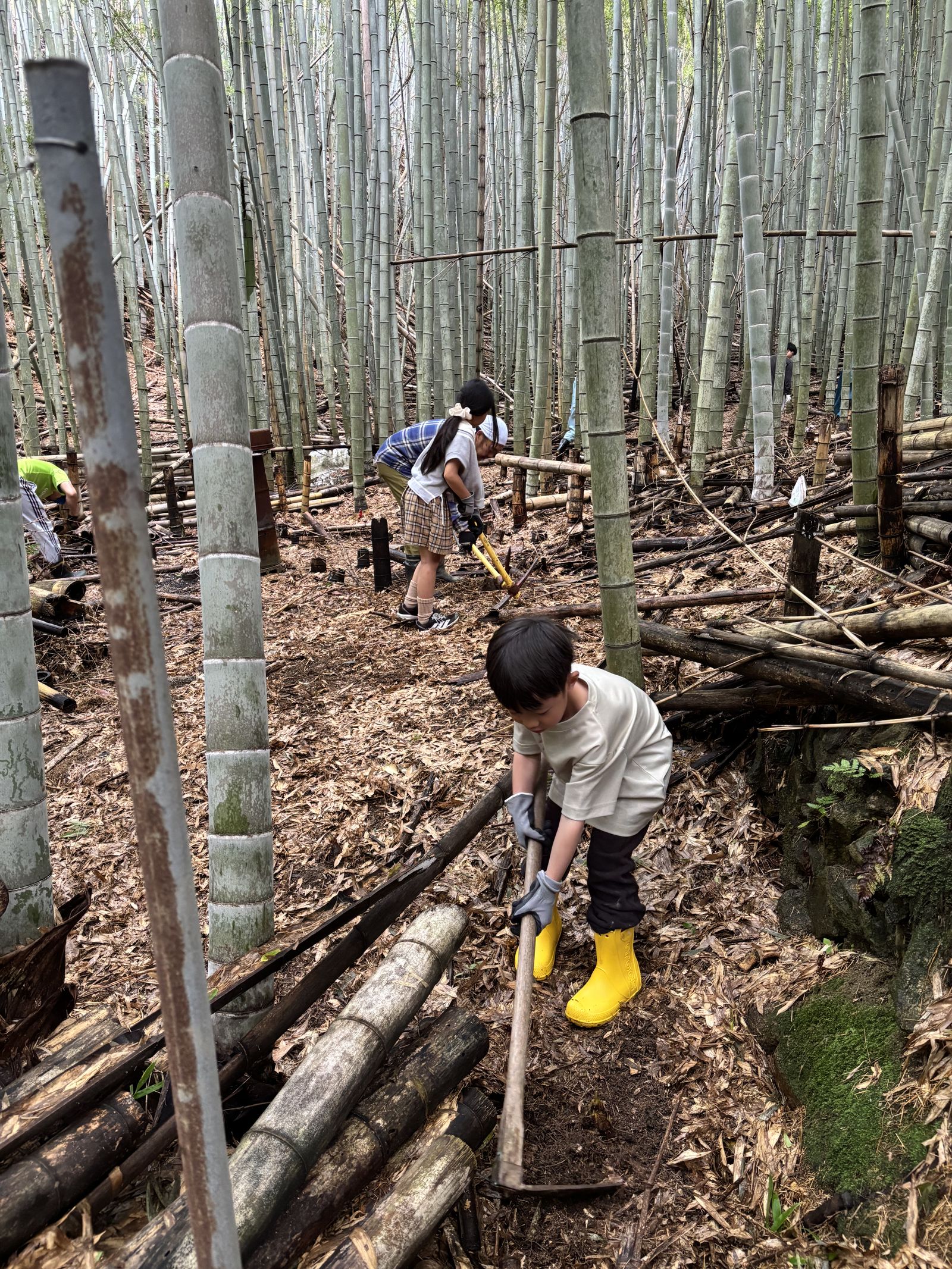 Sáng thứ bảy vừa rồi, cả nhà mình được các chú người Nhật dẫn vào rừng đào măng. Hai bạn nhỏ ban đầu cực kỳ phấn khích, nhưng sau 30′ đã đuối sức và đòi về.