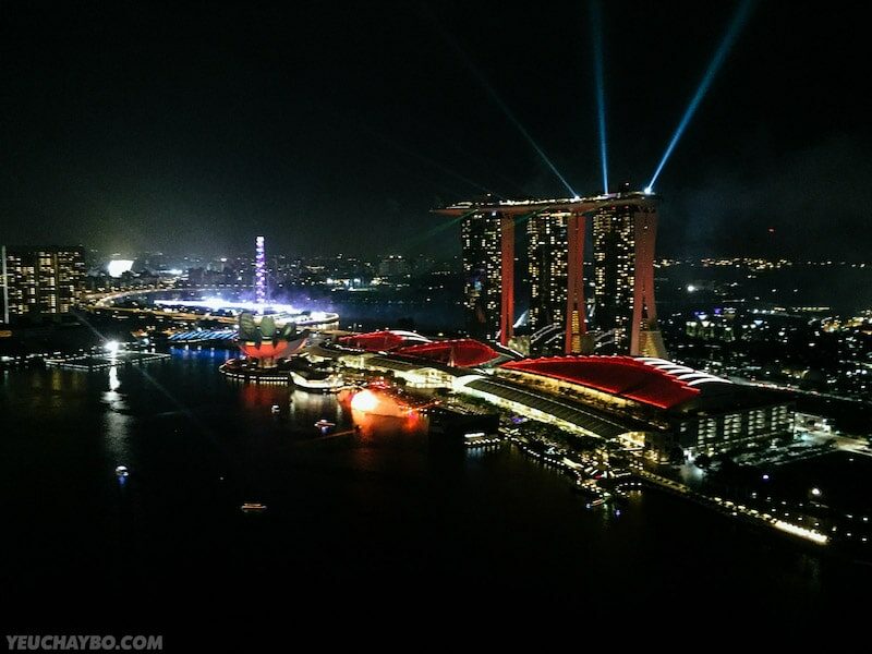 Bài viết xin được kết thúc bằng tấm hình bonus chụp Marina Bay vào buổi tối nhìn từ tầng 44 của The Sail. Lộng lẫy xa hoa quá xá!