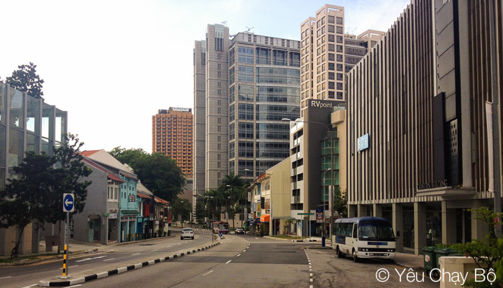 8h30 hai vợ chồng xuống đường để đón bus mới nhận ra bây giờ vẫn còn rất tinh mơ ở Singpore. Hàng quán nhà cửa vẫn đóng cửa im re, xe cộ rất thưa thớt, lâu lâu mới bắt gặp vài người chạy bộ trên đường.