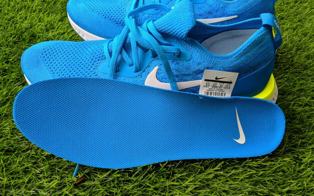 Một điểm đáng chú ý khác là miếng lót giày của Nike Epic React mỏng hơn nhiều so với các đôi giày khác: chỉ khoảng 2mm. So với lót giày trên Pegasus 35 dày 4mm, lót giày của Nike React đã giảm đi được 1/2 khối lượng, góp phần vào độ nhẹ ấn tượng đôi giày: 239 gram (size 10US). Nike Pegasus 35 nặng đến 281 gram với cùng size giày.