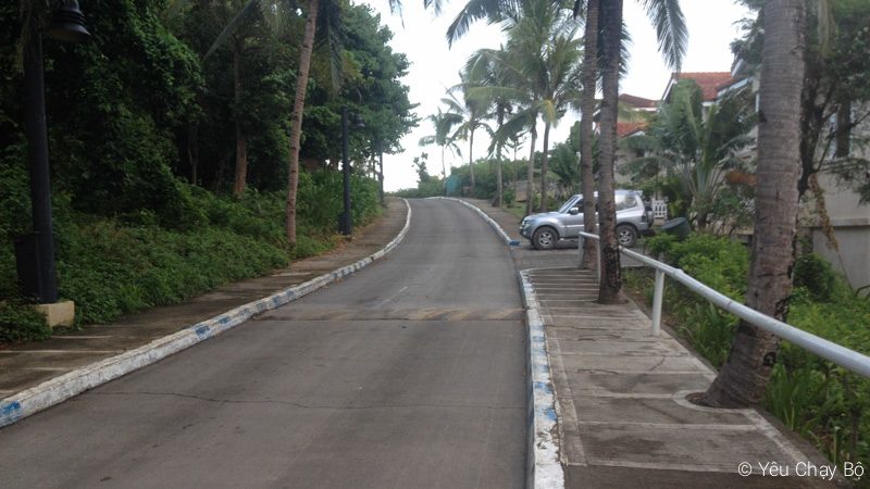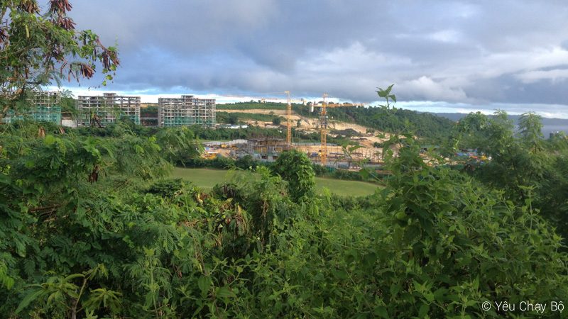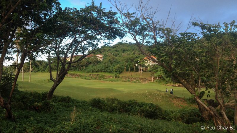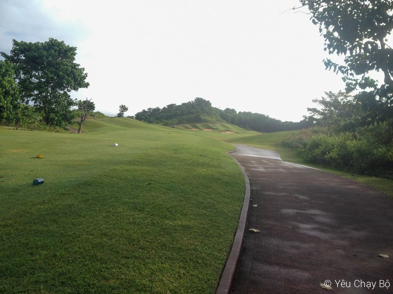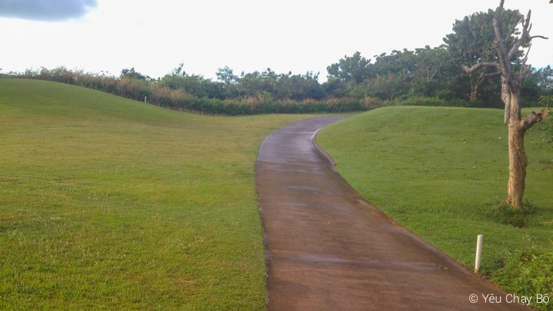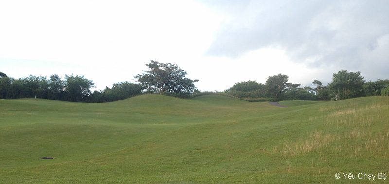 Chạy sâu vào trong thêm 1K quay đầu lại thì thấy vợ đã bỏ cuộc, ngồi bệt bên sân golf ngắm cảnh. Chắc do đồi dốc nhiều quá nên vợ không quen. Còn mình thì vẫn tiếp tục hướng sâu vô trong