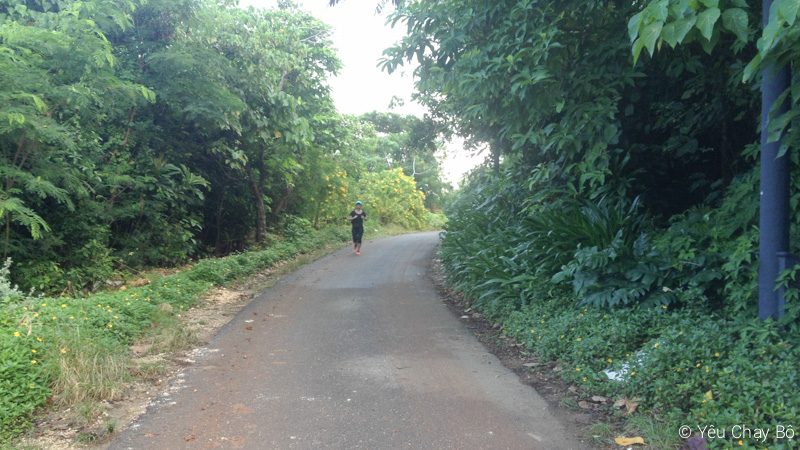 Chạy được thêm khoảng vài trăm mét thì gặp ngay 1 đoạn đường đầy sình lầy đang được cải tạo. Thế là, mình quay đầu chạy về, men theo con đường cũ.