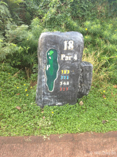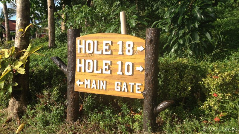 Để vô được lỗ số 18, phải leo một con dốc thiệt dài và quanh co, xunh quanh là cây cối xanh rì. Vừa qua khỏi khu rừng cây sẽ thấy sân golf trải dài trước mắt.
