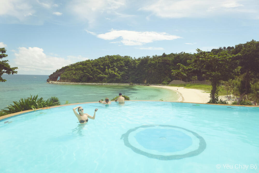 Resort này xây trên núi nên đường hết lên rồi xuống dốc, chạy chẳng khác gì leo đèo. Sau khoảng 10 phút thì hai đứa đến biển. Lapuz Lapuz Beach dần hiện ra trước mắt.