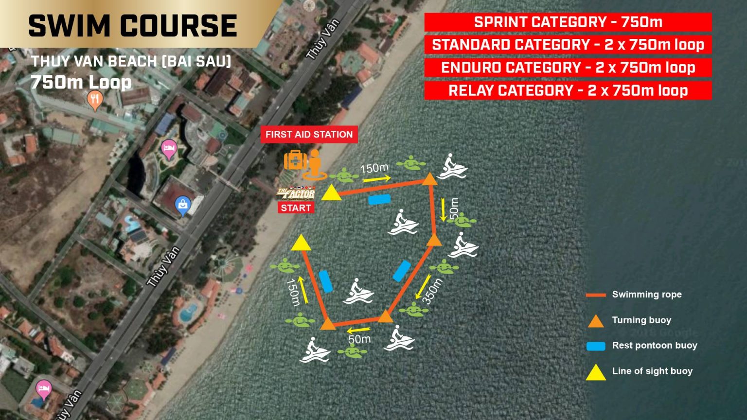 7h10: cự ly Standard xuất phát. Đường bơi 1.500m chia làm 2 vòng y hệt như năm 2019.