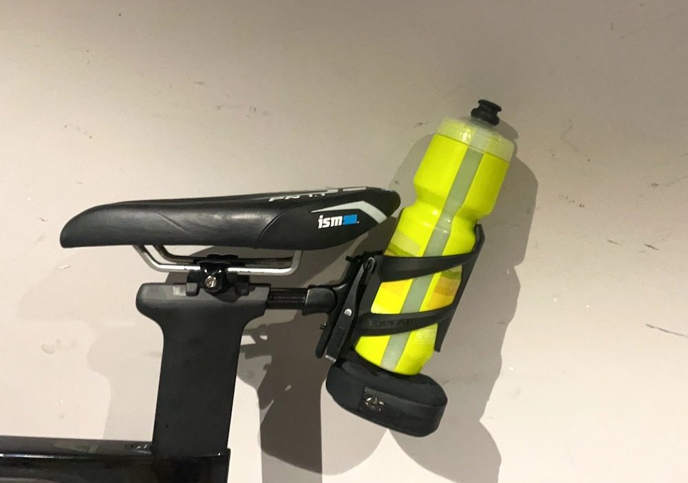 Chiếc P-Series chỉ có thể gắn được 1 bình nước trên sườn xe. Mình phải tìm cách gắn thêm 1 bình nước ở giữa hai tay nghỉ (BTA – Between The Arm) hoặc ở phía sau yên (BTS – Behind the Seatpost) thì mới có thể đủ dùng cho cự ly đạp dài khi thi đấu. Ngoài ra còn phải tìm cách mang theo 1 cái ruột xe dự phòng, 1 cái bình CO2 và 1 van bơm CO2 đề phòng bị bể bánh xe.
