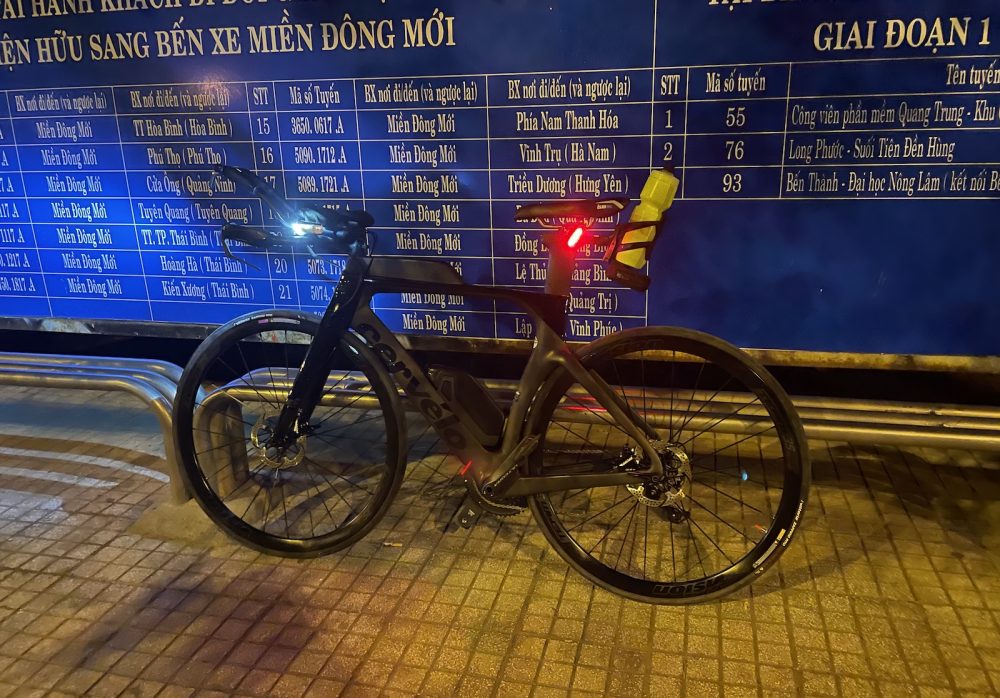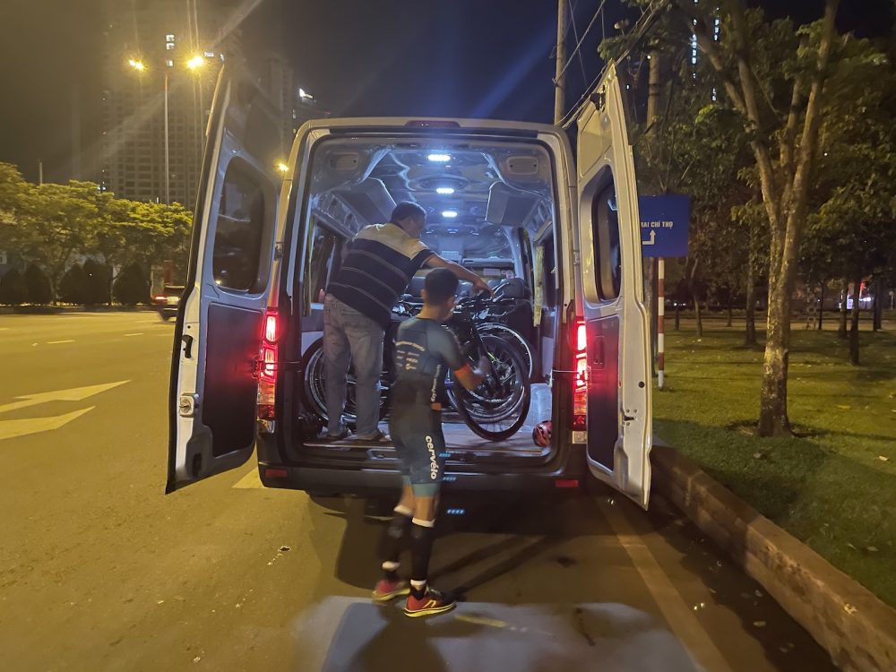 Xe đạp được gắn lên giá treo có sẵn ở khách sạn Pacific. Giờ phải ngồi đợi xe 16 chỗ quay lại sau khi đón hai chiến sĩ từ Long Sơn mới lấy được giày chạy để thực hiện phần Brick tiếp theo.