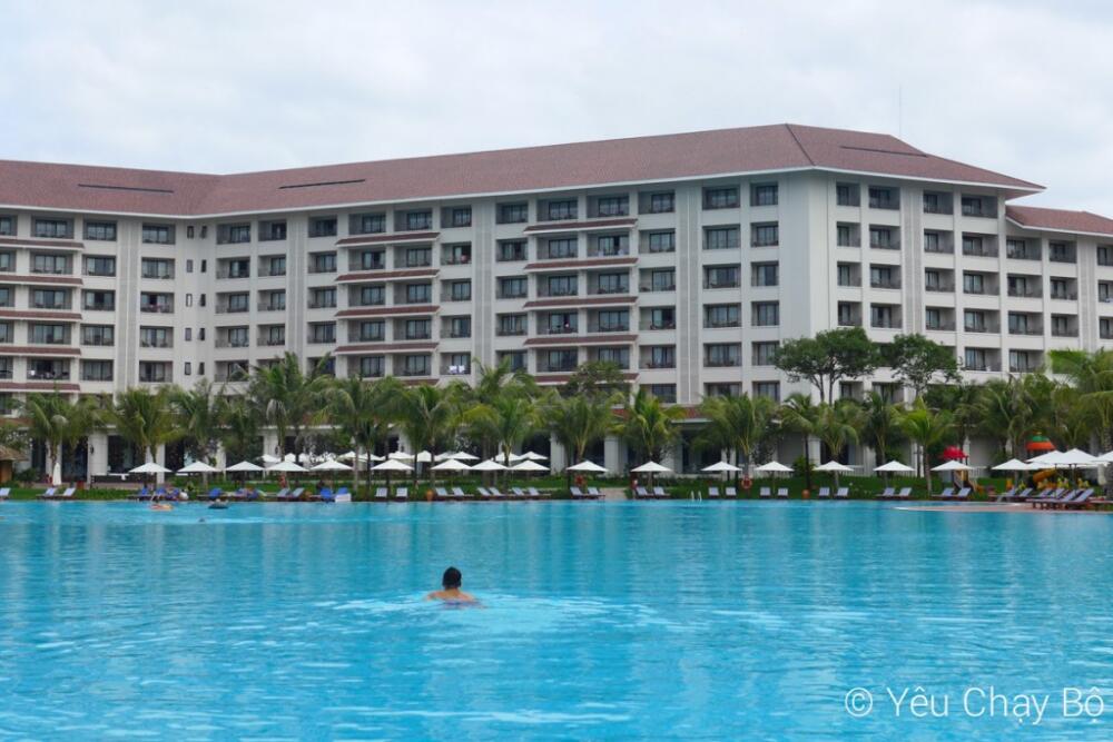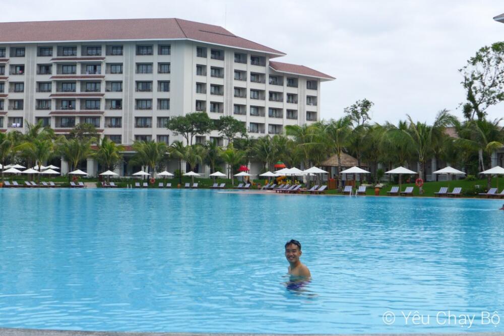 Vinpearl Phú Quốc là resort có hồ bơi bự nhất mình từng ở. To khủng khiếp, nó có hình dạng giống như cái boomerang bị béo phì. Bơi từ đầu nay qua đầu kia có lẽ hơn 100m, bề ngang chắc cũng tầm 30-40m. Được cái rất ít khách xuống bơi, nên cảm giác giống như hồ bơi là của mình. Tha hồ bơi tung tăng qua lại, không sợ đụng trúng ai. Thiên đường là đây!